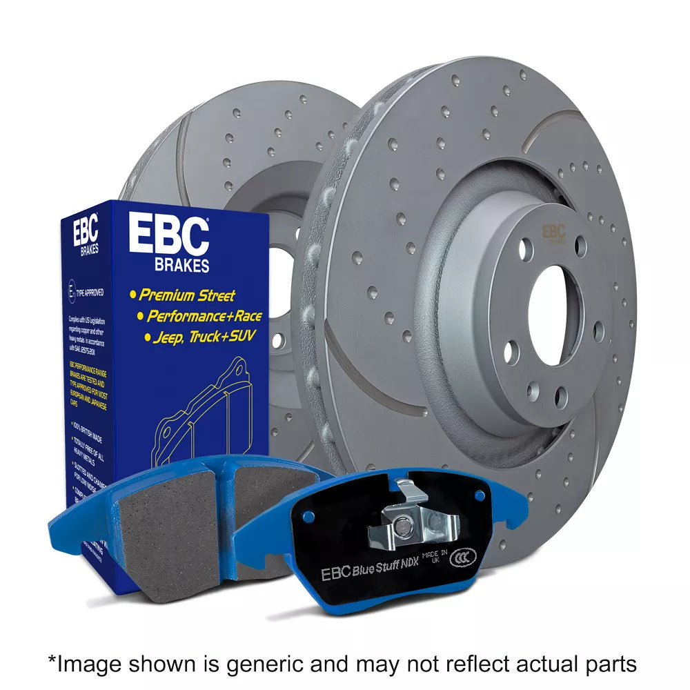 - Kit contains one set of Bluestuff brake pads and one pair of GD slotted and dimpled brake discs